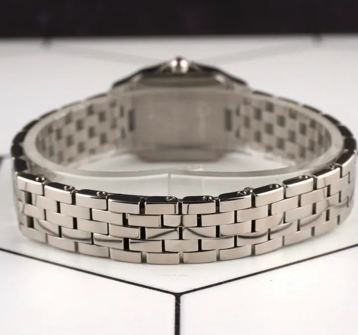 Découvrez l’élégance intemporelle de la Cartier Santos Demoiselle 20 mm, un modèle raffiné en acier inoxydable, idéal pour les poignets fins. Son cadran rose nacré unique lui confère une allure féminine et luxueuse, emblématique du savoir-faire horloger Cartier.