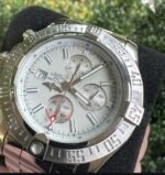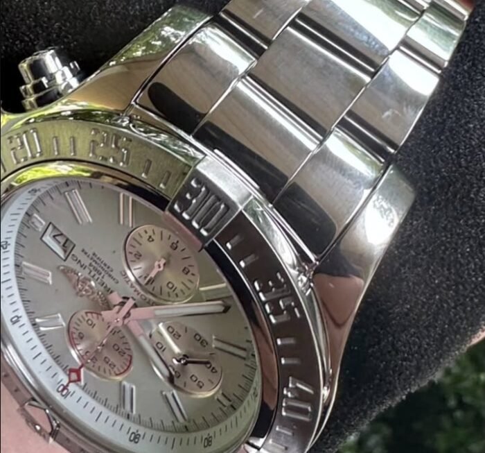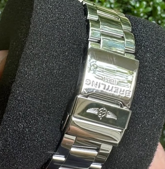 Cette montre est équipée d’un mouvement automatique Breitling certifié COSC, assurant fiabilité et précision, et d’une fonction chronographe pour un suivi précis du temps. Le bracelet acier d’origine Breitling complète le look robuste et élégant de cette pièce.