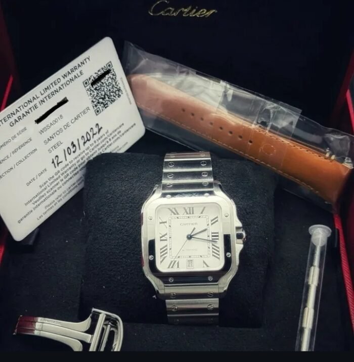 Livrée avec boîte et papiers d’origine, cette pièce garantit son authenticité et sa valeur. Adaptée à un usage quotidien ou pour compléter une collection de montres de prestige, la Cartier Santos Grand Modèle 40 mm séduit par sa finition soignée, son confort au poignet et son style intemporel.