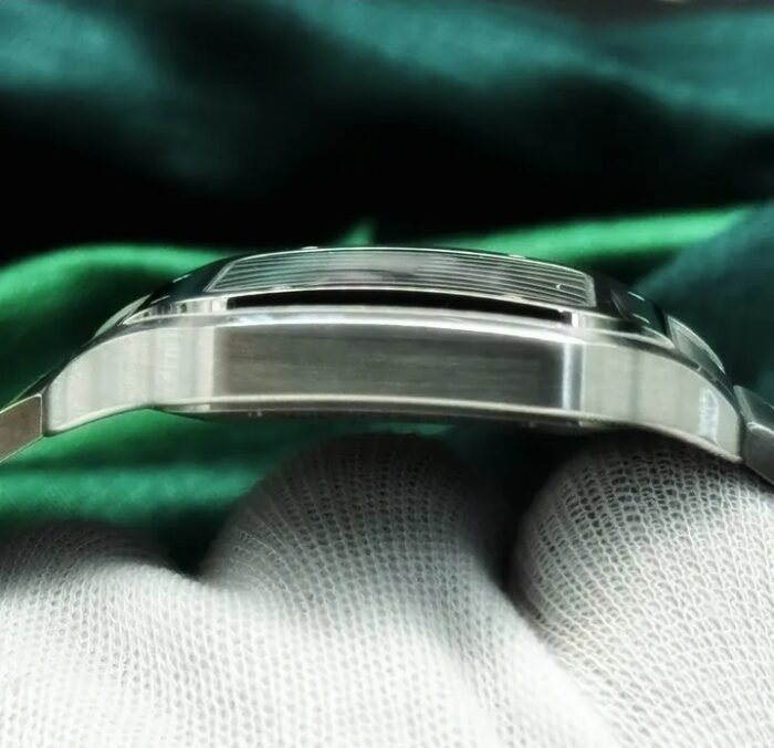 La montre est en excellent état, volontairement laissée non polie, ce qui garantit son authenticité et préserve ses lignes d’origine.