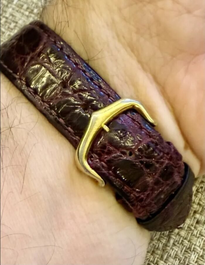 La montre est en excellent état, volontairement laissée non polie, ce qui garantit son authenticité et préserve ses lignes d’origine.
