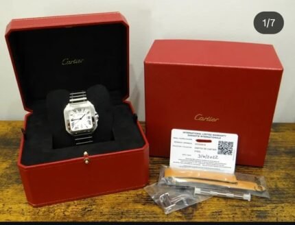 Cette montre est dans un état impeccable, livrée avec boîte et papiers d’origine, ce qui en fait une pièce idéale pour les collectionneurs et les passionnés de montres de luxe. Son style sophistiqué et sa fonctionnalité en font un choix incontournable pour les amateurs d’horlogerie haut de gamme.