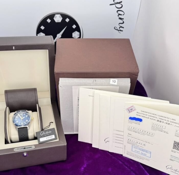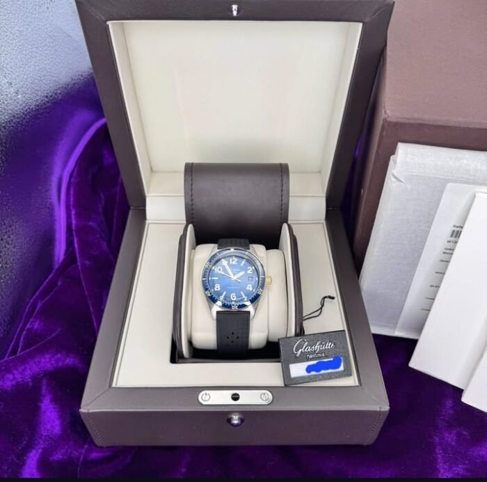 Cette montre est vendue en excellent état, accompagnée de boîte et papiers d’origine, offrant ainsi une garantie d’authenticité et une présentation idéale pour tout amateur de montres de luxe. Les fonctions incluent heures, minutes, secondes et date, faisant de cette Glashütte Original SeaQ une pièce à la fois élégante et pratique au quotidien.