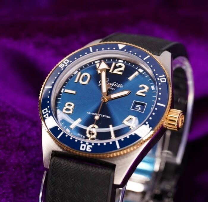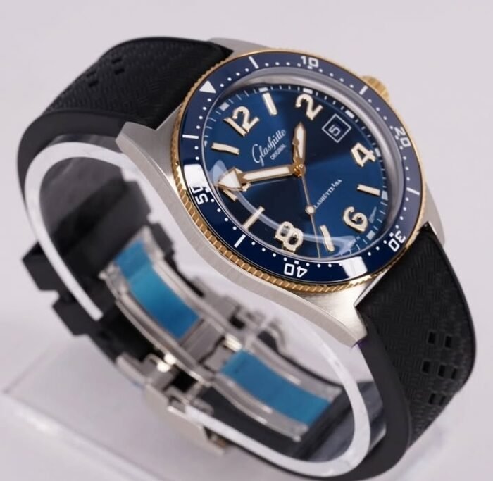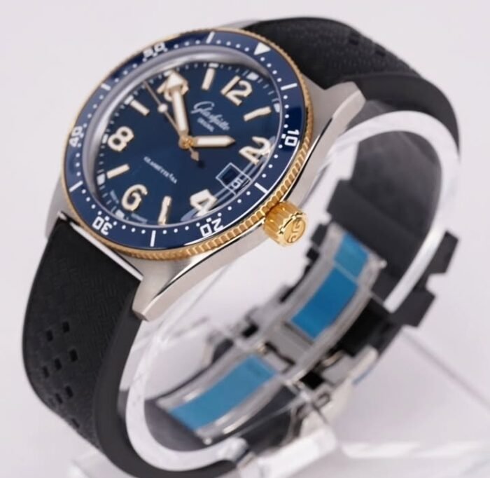 Description : Nous vous proposons ici une Glashütte Original SeaQ réf. 1-39-11-10-90-33, une montre de plongée inspirée des racines Spezimatic vintage de la marque, revisitée avec des matériaux modernes et une ingénierie allemande raffinée. Ce modèle de 39,5 mm est doté d’un cadran bleu intense, d’une lunette tournante unidirectionnelle et d’un mouvement automatique testé selon les normes DIN et ISO rigoureuses des montres de plongée. Cet exemplaire est en excellent état et est livré complet avec sa boîte et ses papiers d’origine