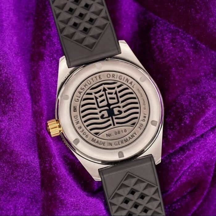 Animée par un mouvement automatique à remontage automatique de précision allemande, la SeaQ garantit fiabilité et robustesse, avec une réserve de marche d’environ 40 heures et une étanchéité de 200 mètres. Son bracelet en caoutchouc avec boucle déployante assure confort et sécurité, tandis que le verre saphir protège efficacement le cadran des rayures.