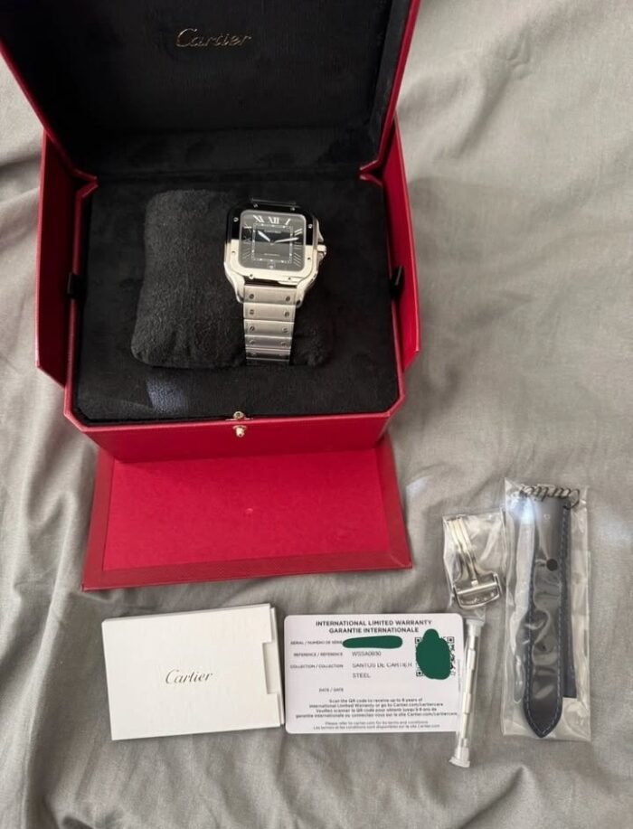 Cette montre est livrée avec sa boîte d’origine, son manuel et ses documents Cartier officiels, assurant son authenticité. Un véritable symbole de raffinement et de prestige horloger suisse, idéal pour enrichir toute collection de montres de luxe.