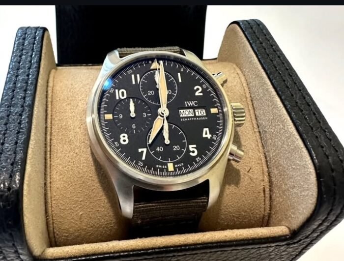 L’IWC Pilot Spitfire IW387901 est un chronographe automatique alliant précision horlogère, élégance classique et inspiration aéronautique. Ce modèle de 41 mm est parfait pour les passionnés de montres de pilote et les collectionneurs exigeants.