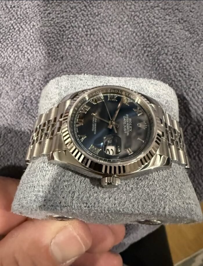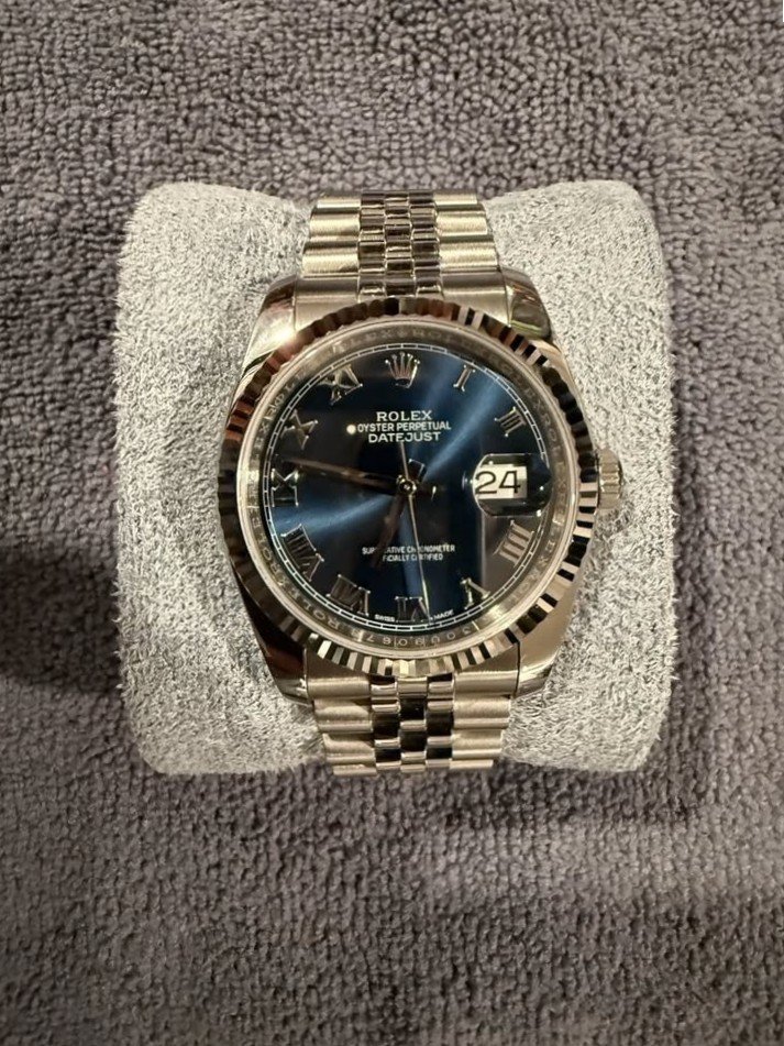 Découvrez la Rolex Datejust 36 mm cadran bleu à chiffres romains, une montre de prestige qui incarne l’élégance intemporelle et la précision suisse.