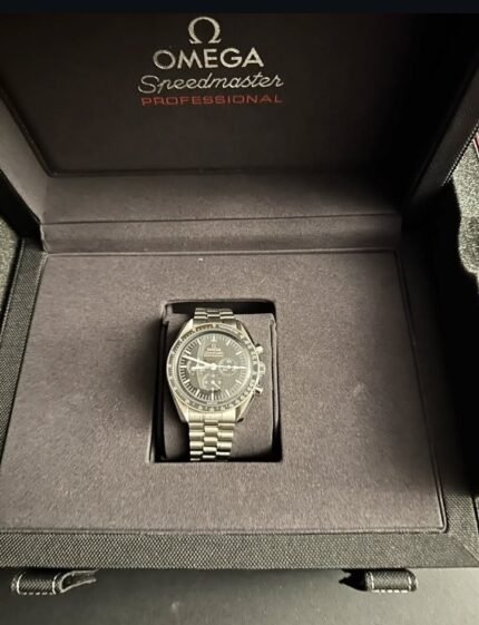La Omega Speedmaster Moonwatch Professional est une montre emblématique, célèbre pour son rôle historique lors des missions lunaires Apollo. Ce modèle pour homme, tout neuf et jamais porté, arbore un cadran noir classique et conserve tous ses autocollants d’origine, offrant ainsi une pièce authentique et prête à rejoindre une collection ou à être portée au quotidien.
