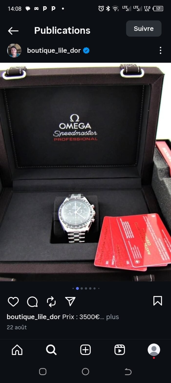 La Omega Speedmaster Moonwatch Professional est une montre emblématique, célèbre pour son rôle historique lors des missions lunaires Apollo. Ce modèle pour homme, tout neuf et jamais porté, arbore un cadran noir classique et conserve tous ses autocollants d’origine, offrant ainsi une pièce authentique et prête à rejoindre une collection ou à être portée au quotidien.