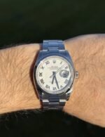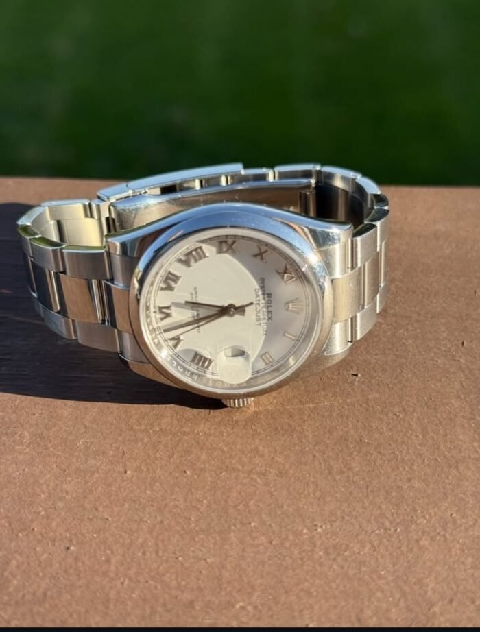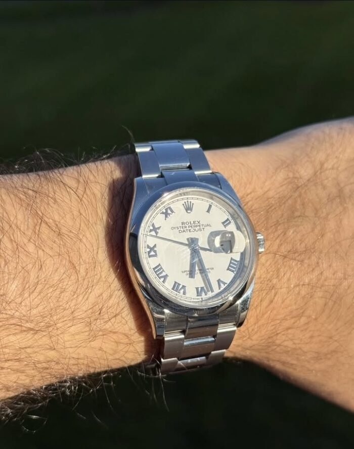 La Rolex Datejust 36 mm réf. 126200 incarne l’élégance intemporelle et le savoir-faire suisse. Avec son cadran blanc aux chiffres romains, son boîtier en acier inoxydable et son bracelet Oyster raffiné, elle allie style classique et performance horlogère.