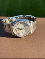 Elle est animée par un mouvement automatique de haute précision et protégée par un verre saphir résistant aux rayures. Sa lunette lisse en acier et son bracelet Oyster assurent un style polyvalent et durable.