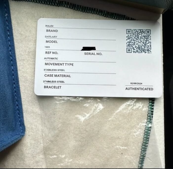 Vendue initialement le 31 mars 2021, elle est accompagnée de tous les reçus de vente. La carte Rolex n’est pas incluse, mais la garantie Rolex reste valable.