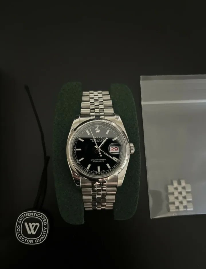 Rolex Datejust 36 mm SS 116200 – Montre Homme Acier Inoxydable | Cadran Noir | Bracelet Jubilee
