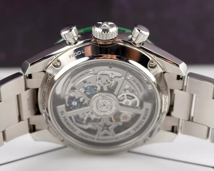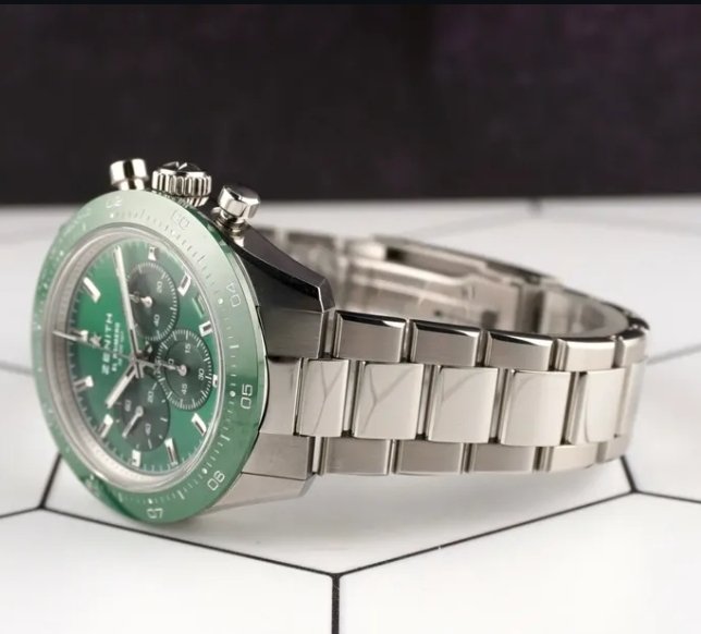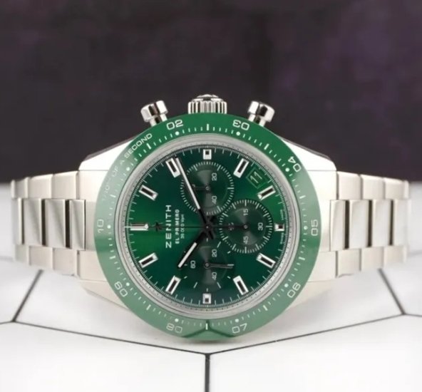 Rare Zenith Chronomaster Sport Yoshida Édition Spéciale, cadran vert, boîtier 41 mm en acier inoxydable. Montre de 2024 en excellent état, livrée avec boîte et papiers.