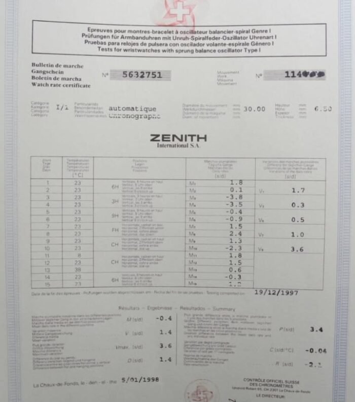 Zenith El Primero – Chronomètre et Chronographe en Or Rose 18K – Édition Limitée (1998)