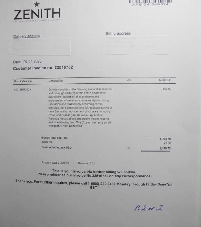 Mouvement : Automatique El Primero, chronomètre certifié, réserve de marche ~50 heures